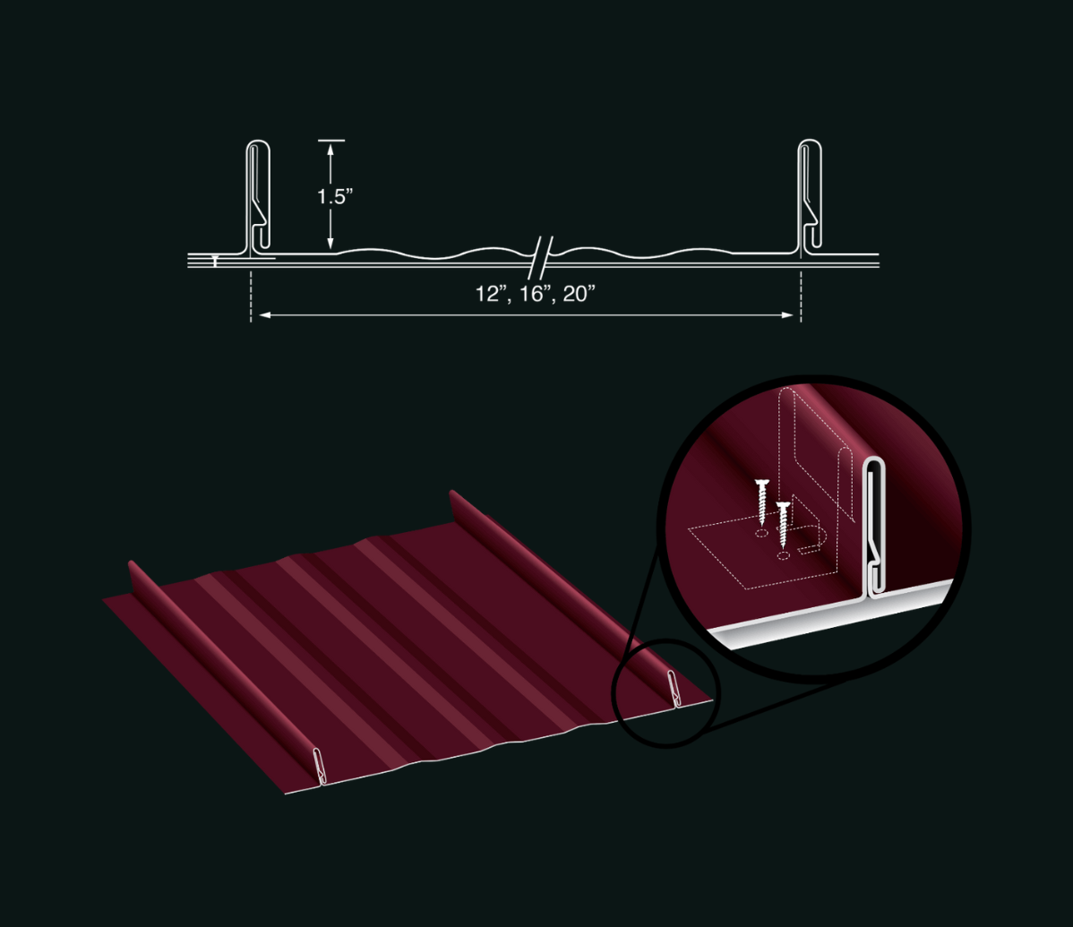 Installed over solid decking, this design allows for expansion & contraction caused by natural elements, providing a virtually leak proof roof with exceptional UL580 wind uplift ratings.